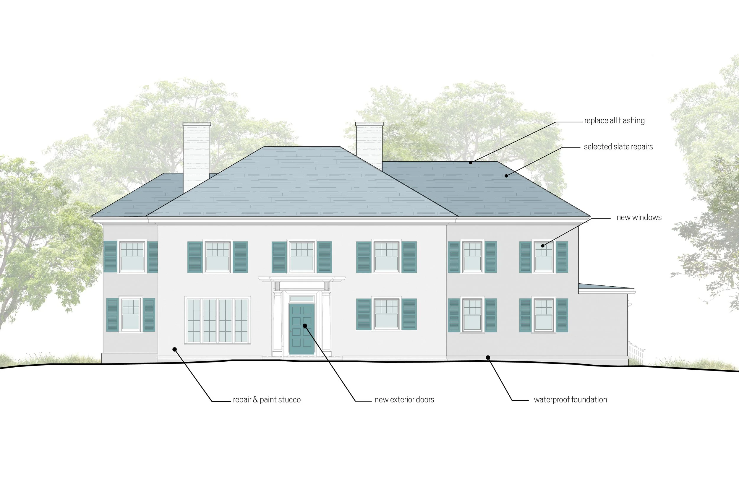 At the Clark Art Institute, designLAB is in early stages of preparing plans for an interior renovation of the stately Wall House, a residential property adjacent to the Clarkβs campus. The house, acquired by the Clark several years ago, will be redesigned to support the Clark's overall commitment to enhancing the museum field by providing housing for emerging professionals who are participating in a new program the Clark is launching to provide internships for all types of museum-related careers. In keeping with the Clark's commitment to inclusion and accessibility, the interns will benefit from comfortable accommodations that encourage collegiality and collaboration. The former single-family home will be converted into five private apartments, joined by communal living and dining spaces that foster socialization and teamwork among the residents while learning at the Clark. Our improvements will center sustainable building systems and accessibility enhancements. This buildingβs distinctive exterior character will be preserved and restored to maintain the visual integrity of the Clark's picturesque landscape, reinforcing its goal of supporting emerging professionals in the arts.
