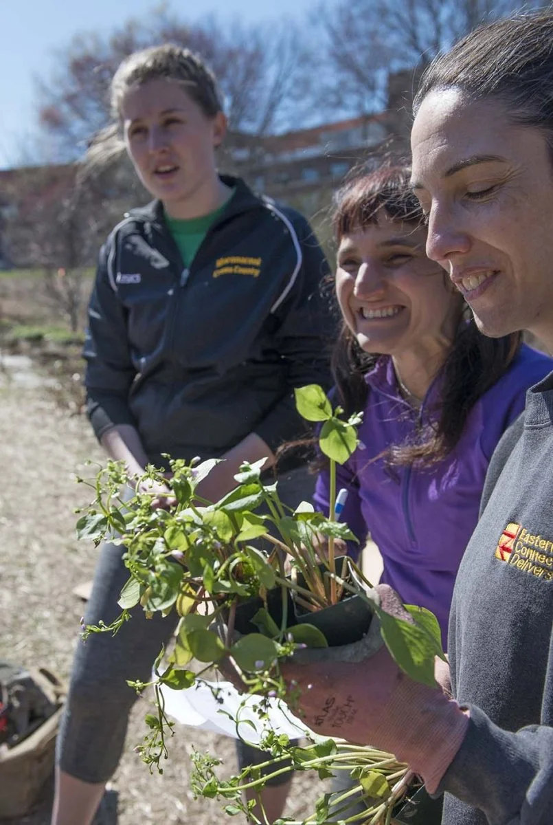A group of volunteers at the College’s Edible Ecosystem Garden on Observatory Hill.