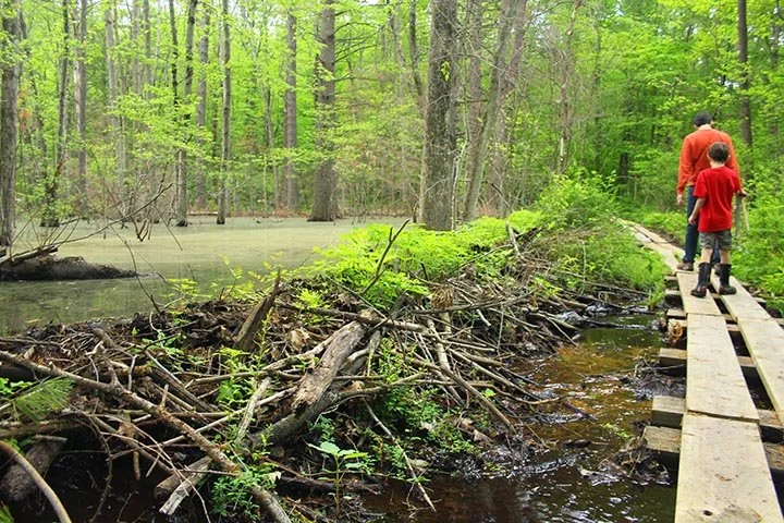 The Trustees of Reservations acquired Farandnear from the Goodspped-Banks family in 2009. The original 3-acre site purchased by Charles Goodspeed in 1902 had grown to encompass more than 89 acres. The reservation is home to multiple microenvironments, including a ravine in the Spruce Swamp Brook, locally known as βParadiseβ for its isolation and scenic beauty; and a βpinetumβ: an arboretum of pines and coniferous trees, which contains over eighty species of conifers. When the property transferred to the Trustees upon the death of Goodspeedβs grandson, Arthur Banks, the Trustees engaged designLAB to develop a master plan for the property, at the center of which was a new visitors pavilion on the site of the familyβs former residence.